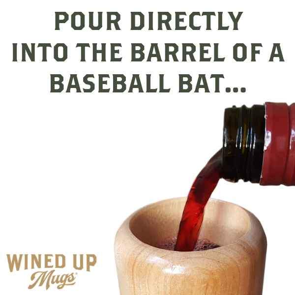 Pour wine directly into the barrel of the baseball bat to enjoy 6oz of cabernet sauvignon, white riesling, or anything in between.