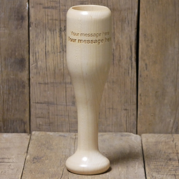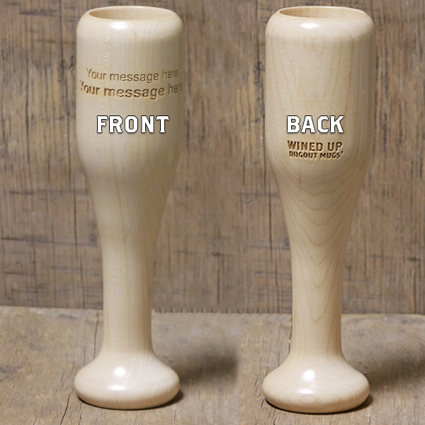 Adding a custom message on this baseball bat wine glass adds an extra "awesomeness" to drinking from a baseball bat.